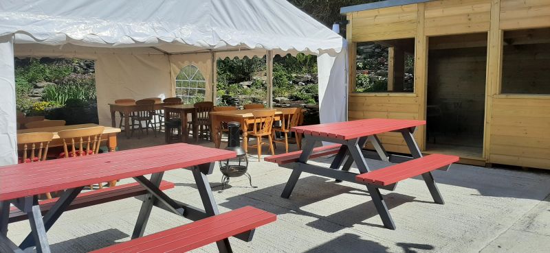 Marquee, shed and beer garden